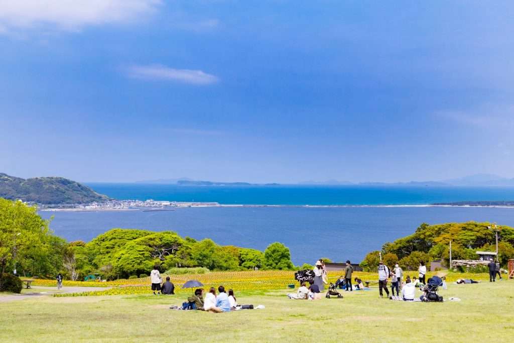 「のこのしまアイランドパーク」は、博多湾に浮かぶ能古島にある自然豊かな観光スポットです。福岡市内からフェリーとバスを利用して約20分の場所にあります。