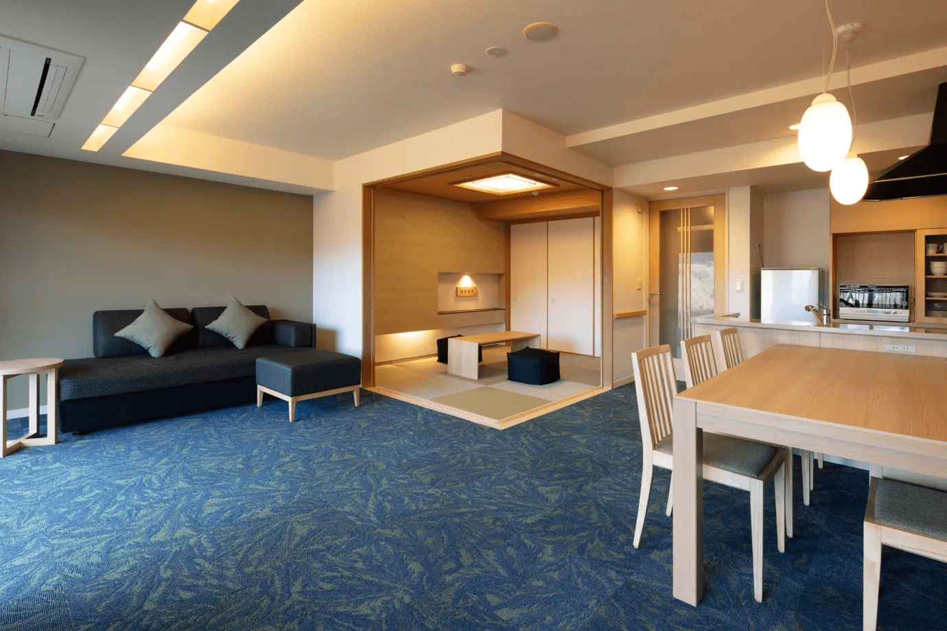 また、IHキッチンや洗濯乾燥機などが完備されているので、長期滞在にもぴったり。落ち着いた空間で過ごしたいカップルにおすすめです。