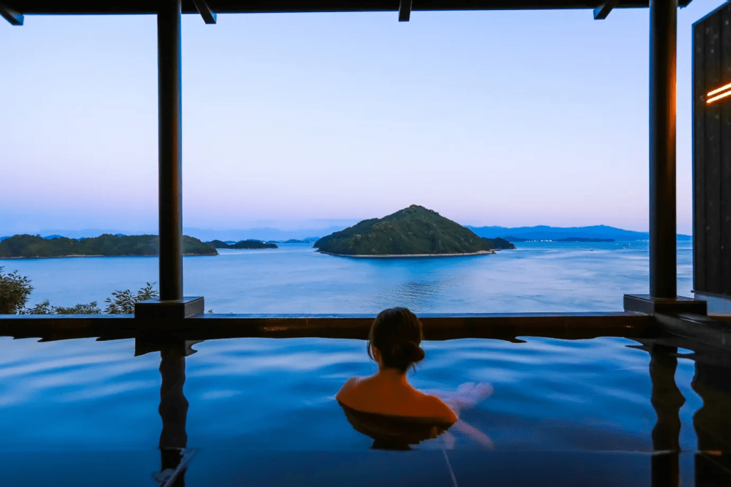 レストランでは新鮮な瀬戸内の海の幸を活かした料理が食べられるのもうれしいポイント。客室はモダンなデザインで、カップルで過ごすのにもぴったりです。